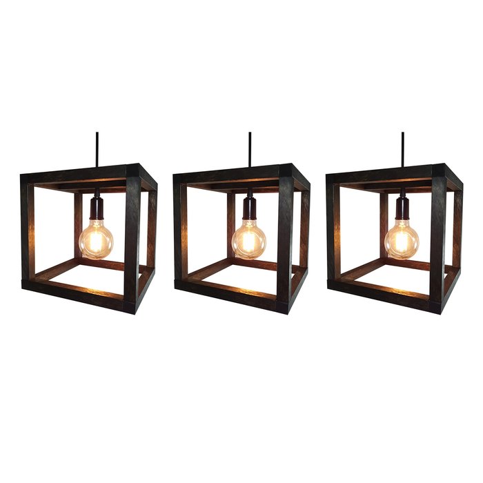 Kit 3 Luminárias de Teto Pendente Cubo Estilo Industrial - Preto Preto