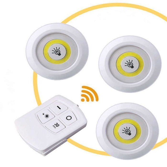 Kit 3 Luminárias Lâmpada Led Sem Fio Com Controle Remoto Descrição Controle de 2 vias: O controle remoto IR permite que você ajuste o brilho em 2 níveis, e também, permite o controle de tempo para desligar a luz em 30 minutos sem fio Você também pode ligar / desligar a luz do disco, tocando no interruptor na lente das luzes Use o adesivo de dupla face para fixar a luz do disco em qualquer lugar que você queira iluminar Especificações/Características do Produto - Material: Polipropileno e Componentes Eletrônicos - Cor da Luz: Branco Frio - Tipo de bateria: 3 pilhas AAA (não inclusas) - Tipo de bateria de controle remoto: 2 pilhas AAA (não inclusas) - Tipos de acendimento: toque ou controle remoto - Dimensão lampada: 9x7x2.1cm - Dimensão controle: 8x5.9x1.5cm - Fixação dupla face - Controle para ligar e desligar - Opção de claridade alta ou baixa - Opção de timer de 30 minutos Itens Incluso - 3 Luminárias led spotlight - 1 Controle remoto Atenção: 1 - O cliente tem até 7 dias corridos, após o recebimento, para devolução do produto (artigo 49) 2 - Lembrando que o produto deve retornar sem defeitos 3 - Imagem Meramente ilustrativa