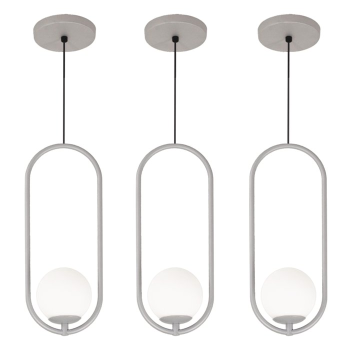 Kit 3 Luminárias Teto Lustre Arco Globo Cozinha Mesa Prata Prata