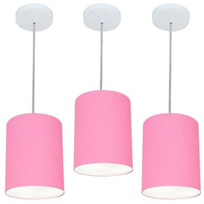 Kit 3 Lustre Pendente Cilíndrico 18x25cm Rosa Bebê Bivolt