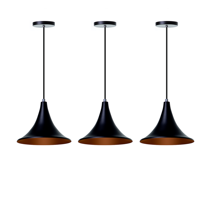 kit 3 Lustre Pendente Interno Balcão Chapéu Chines 23cm: Preto com Cobre