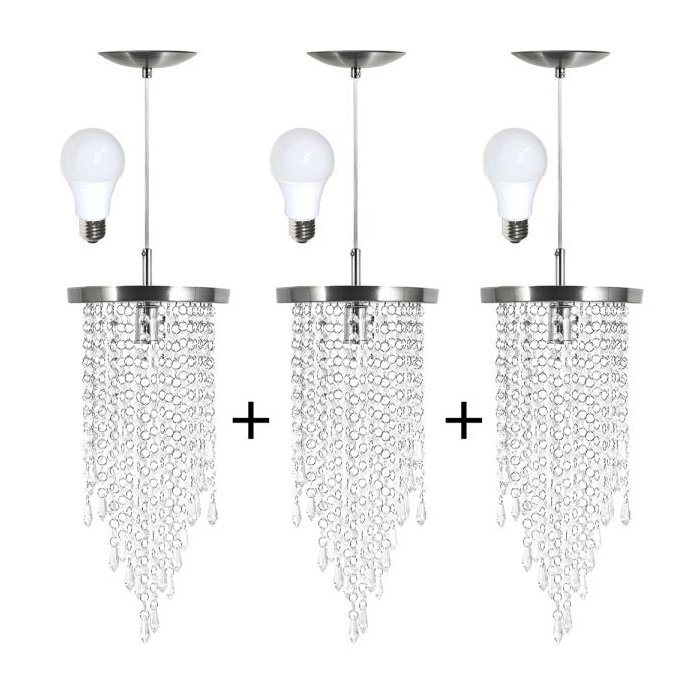 Kit 3 Lustre Redondo Crilik Ls7301 Cromado com Lâmpadas Prata