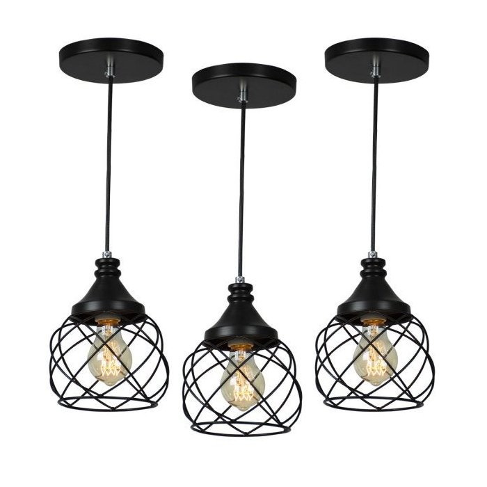 Kit 3 Lustres Pendente Esfera Aramado Preto 15cm Preto