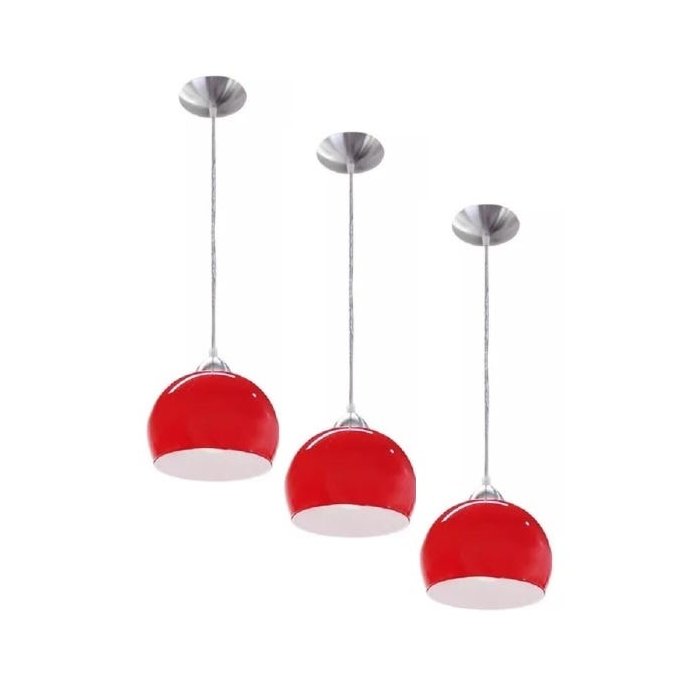 Kit 3 Lustres Pendente Vermelho Cozinha Americana