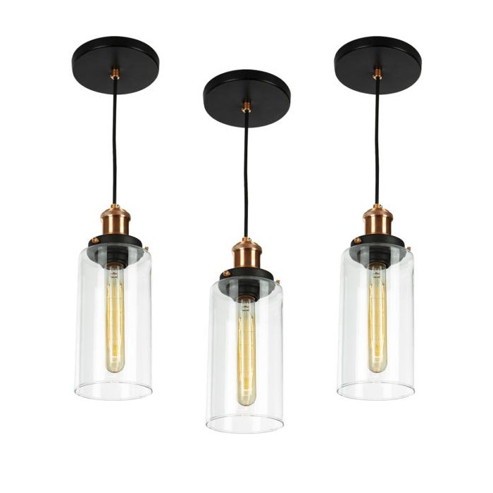 Kit 3 Lustres Pendentes Château Cilindrico Vidro Preto Cobre