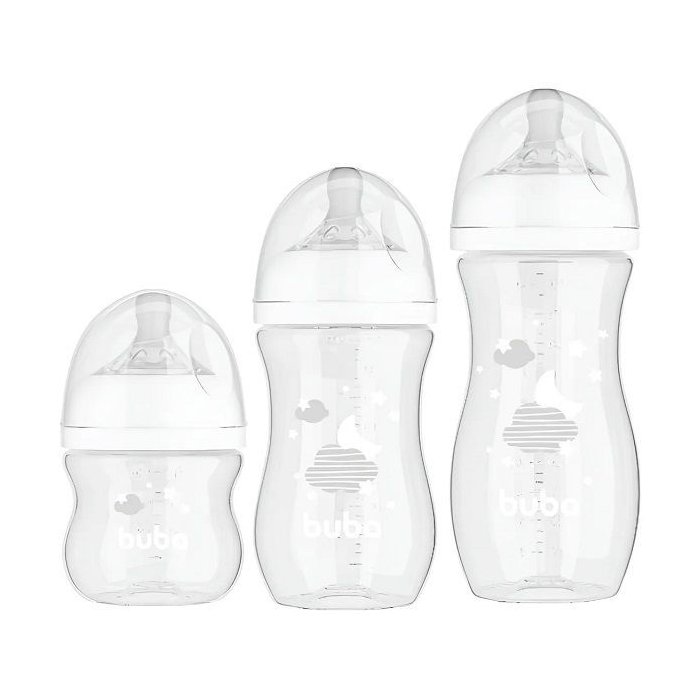 Kit 3 Mamadeira Easy Flow Nuvem Branca 120ml/270ml/330ml Anticolica Buba