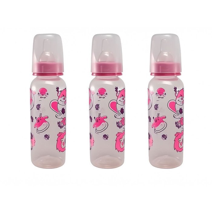 Kit 3 Mamadeiras Petita Linha Anplas 240 Ml Bico Redondo em Pvc Cor: Rosa Estampada Rosa Estampada
