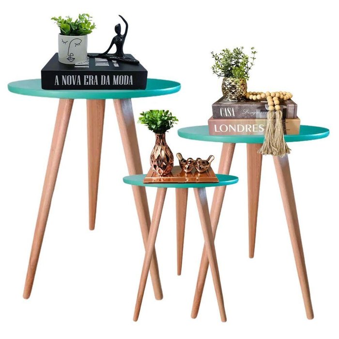 Kit 3 Mesinhas Laterais de Canto Apoio Redonda Pé Palito Cor:verde