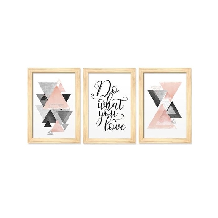 Kit 03 Mini Quadros com estampa geométrica rosa, para dar modernidade ao seu lar