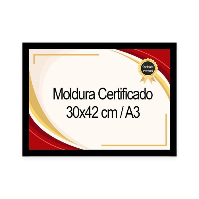 Kit 3 Molduras com Vidro A3- 30X42cm Moldura Laqueada Fosco - Preto