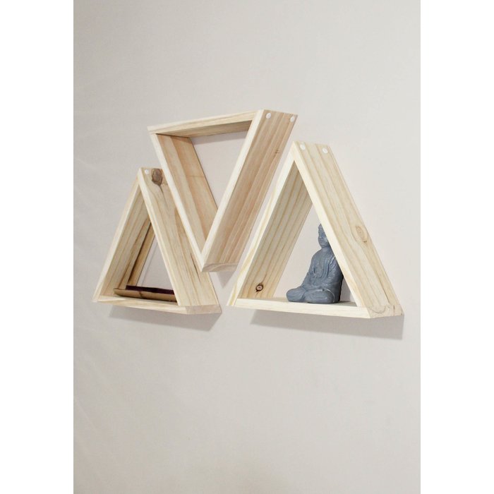 Kit 3 Nichos Triangulo para Decoração Madeira Natural