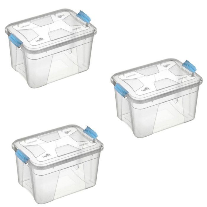 Kit 3 Organizador Plástico Grande Box Transparente 56 Litros