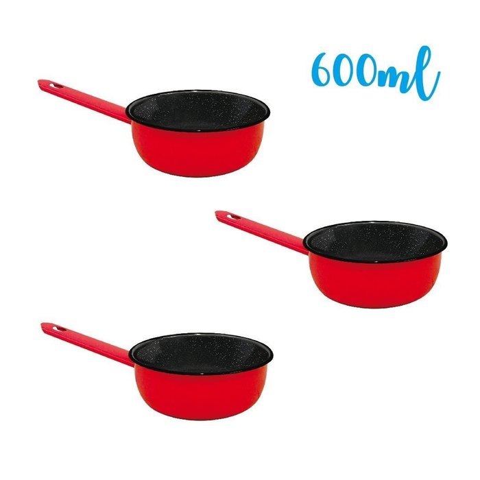 Kit 3 Panela Esmaltada Ágata Pequena 12 600ml Metallouça Vermelho