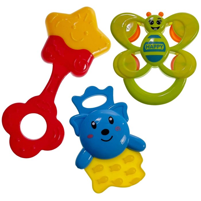 Kit 3 Pçs Chocalhos Para Bebê Brinquedinhos Infantil Atóxico Texturas Sentidos Atividades