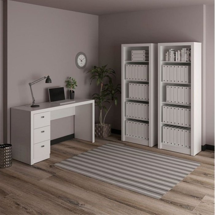 Kit 3 Peças com Escrivaninha 3 Gavetas ME4102 e 2 Estantes para Escritório ME4104 Branco