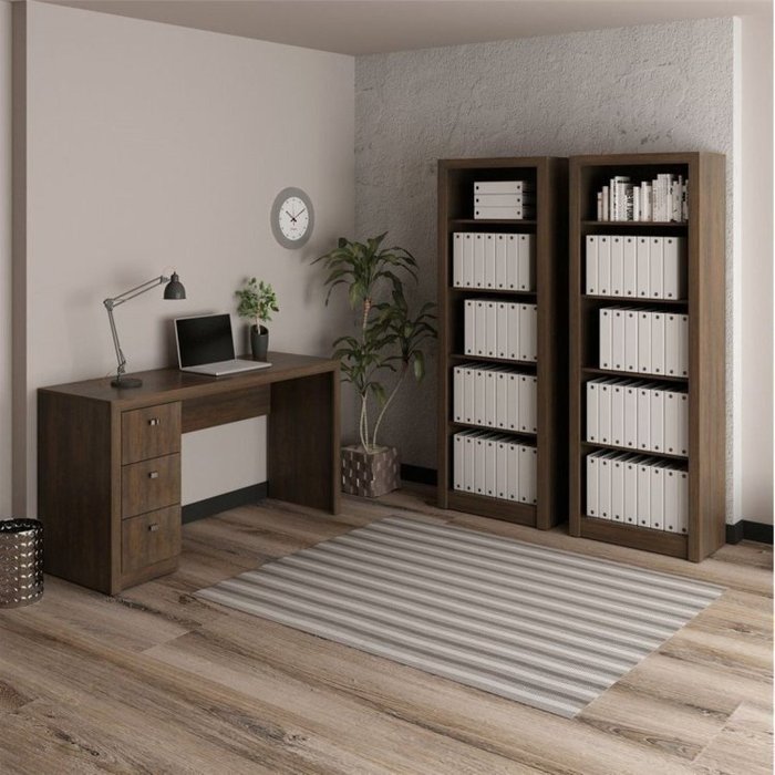 A Escrivaninha Tecno Mobili é feita em MDP com forte estrutura, que garante estabilidade ao produto. A Mesa para Escritório Tecno Mobili possui altura de 74,5cm e largura de 1,36m, com profundidade 46,5cm, medidas que oferecem comodidade e ergonomia na hora de estudar ou trabalhar. Suas 3 gavetas com corrediças metálicas e puxadores cromados oferecem boa capacidade de organização. A Estante Tecno Mobili é facilmente ajustada a espaços diversos, pois mede 1,71 m de altura por 60 cm de largura com 31,5 cm de profundidade, sendo ótima para manter a ordem dos seus arquivos e objetos ou acomodar seus livros. A Estante para Escritório Tecno Mobili é feita em MDP, material de alta resistência, que garante estabilidade e durabilidade ao produto, oferecendo total segurança. Acabamento em PB.