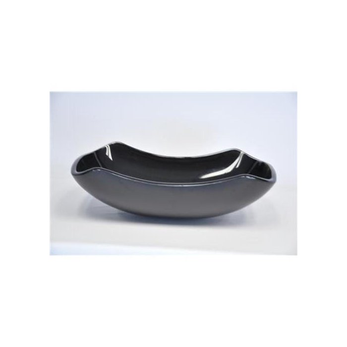 Dimensões: 42,5 x 28,5 x 10,5cm espessura: 12mm material: vidro temperado. kit 3 peças com cuba de vidro preta, forma abaulada oval (canoa), válvula click cromada para lavatórios e sifão cromado