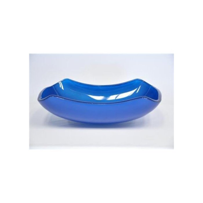 Dimensões: 53 x 39 x 14cm espessura: 12mm material: vidro temperado. kit 3 peças com cuba de vidro na cor azul, forma abaulada oval (canoa) BIG, válvula click cromada para lavatórios e sifão cromado