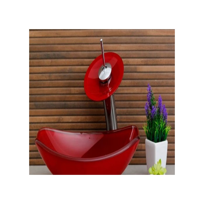 kit 3 peças cuba de vidro canoa chan vermelho+válvula+sifão