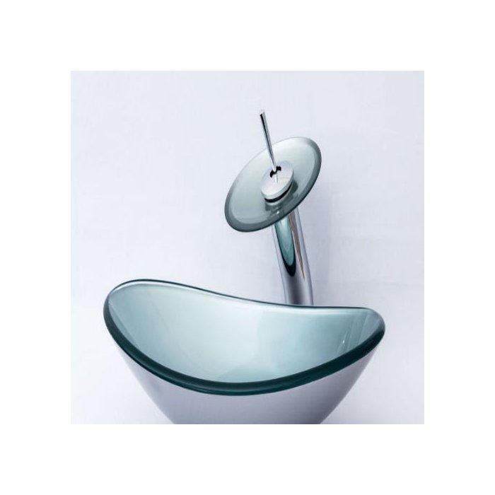 kit 3 peças cuba de vidro canoa oval prata+válvula+torneira