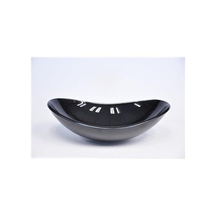 Dimensões: 56,5 x 37 x 14,8cm espessura: 12mm material: vidro temperado. kit 3 peças com cuba de vidro na cor preta, forma oval canoa, BIG, válvula click cromada para lavatórios e torneira cascata de vidro temperado na cor preto