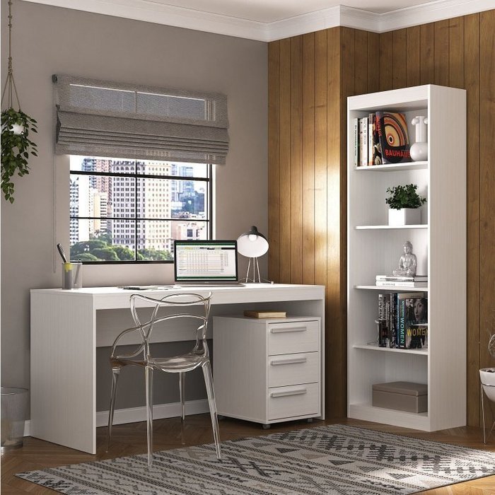 Kit 3 Peças Escrivaninha 150cm com Gaveteiro e Estante Espresso Móveis Branco