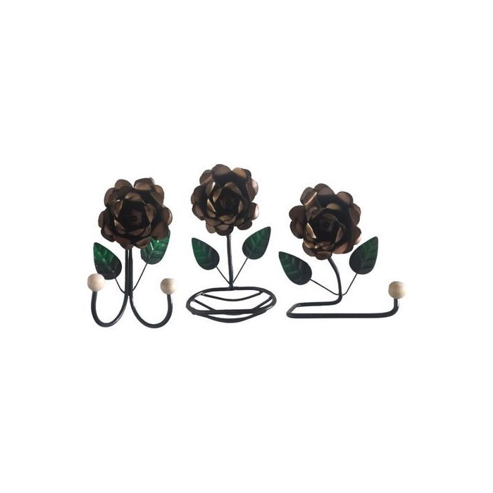 Kit 3 Peças para Banheiro com Flores em Ferro:marron