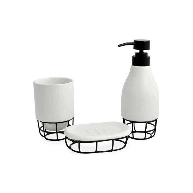 Kit 3 Peças para Banheiro Lather em Cerâmica c/Suporte Metal