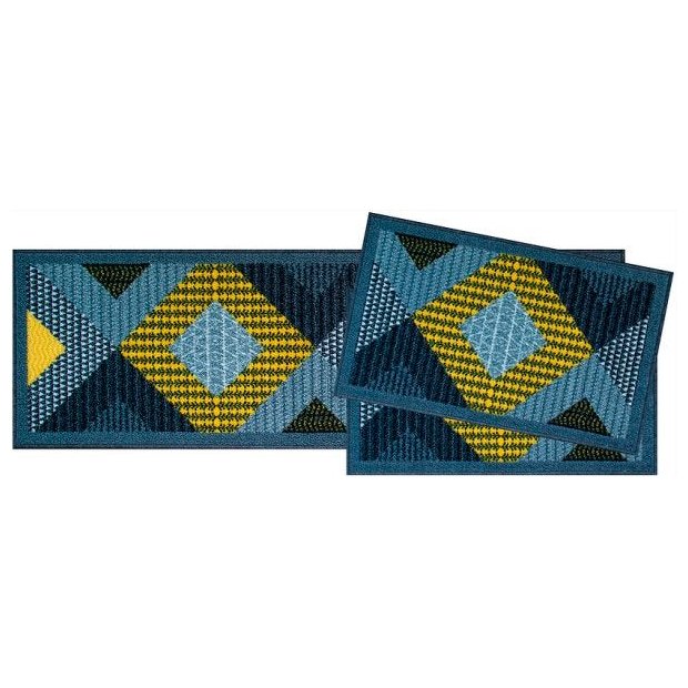 Kit 3 Peças Passadeira Tapete Cozinha 110cm x 36cm e 60cm x 36cm - Geométrico - Amarelo