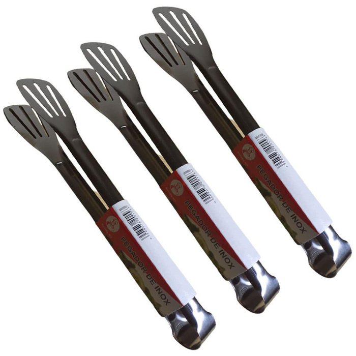 Kit 3 Pegador de Carne Churrasco Salada Alimento Aço Inox Cinza