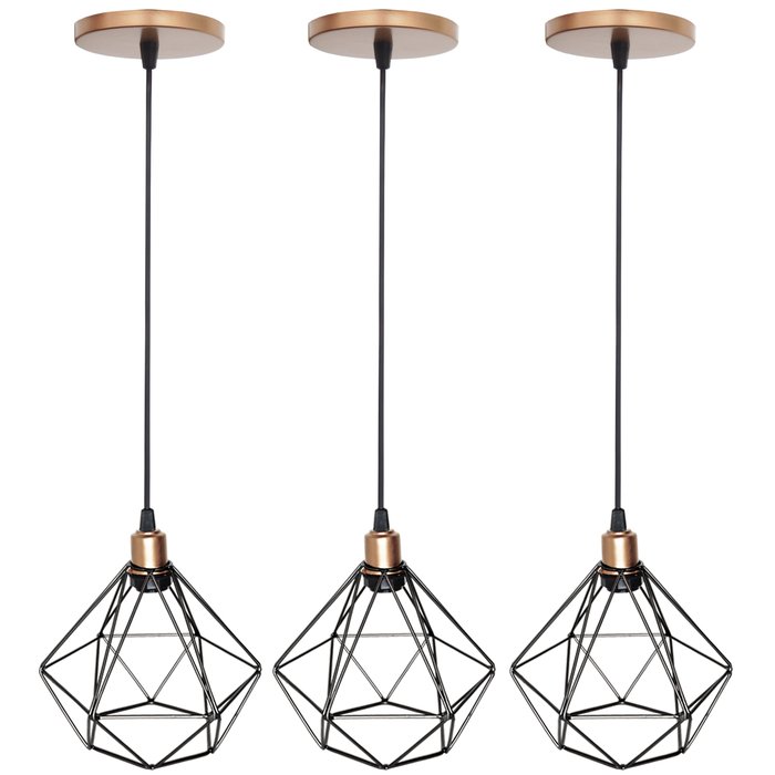 Kit 3 Pendente Aramado Diamante Luminária Lustre Luxo Pequeno Teto Retrô Agp Ilumini Industrial - Pr