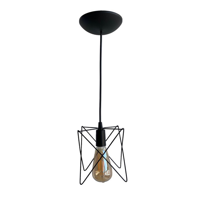 Kit 3 Pendente Aramado Poptem Estrela 1 Lampada preto luminária metal lustre sala quarto balcão cozi Preto