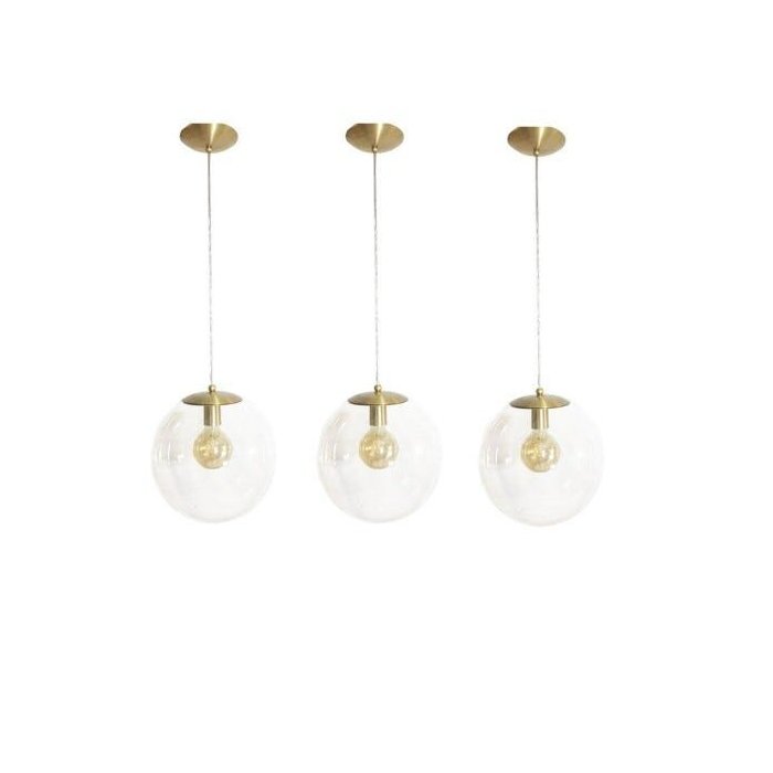 Kit 3 Pendente Redondo Esfera 30cm Dourado e Vidro Cristal Madelustre Dourado