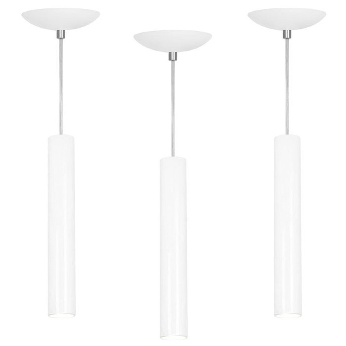 kit 3 Pendente Tubo Cilindro Branco 30Cm + Led 3k