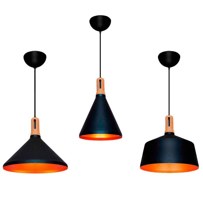 Kit 3 Pendentes Itamonte Aluminum com Madeira Preto e Cobre Preto Cobre
