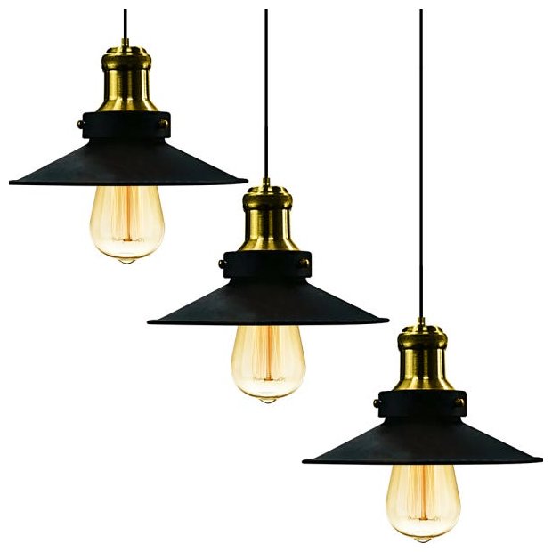 Kit 3 Pendentes Nordic Industrial 22 Cm Preto com Dourado Preto com Dourado