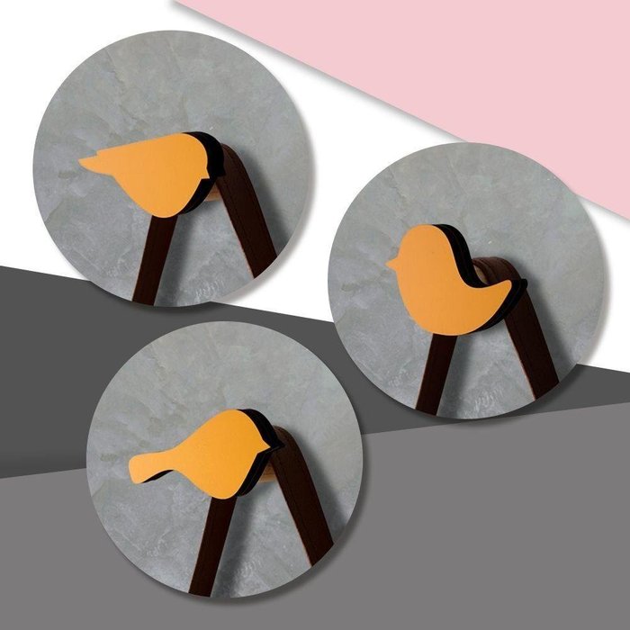 Kit 3 Pendurador De Parede Em Mdf Pássaros - Amarelo