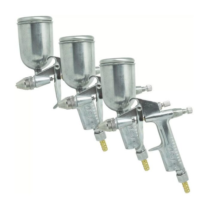 Kit 3 Pistolas Pintura Gravidade Aerógrafo 0,5mm 2,5 à 4 bar 200ml Alumínio Importway IWPPA-PR Prata