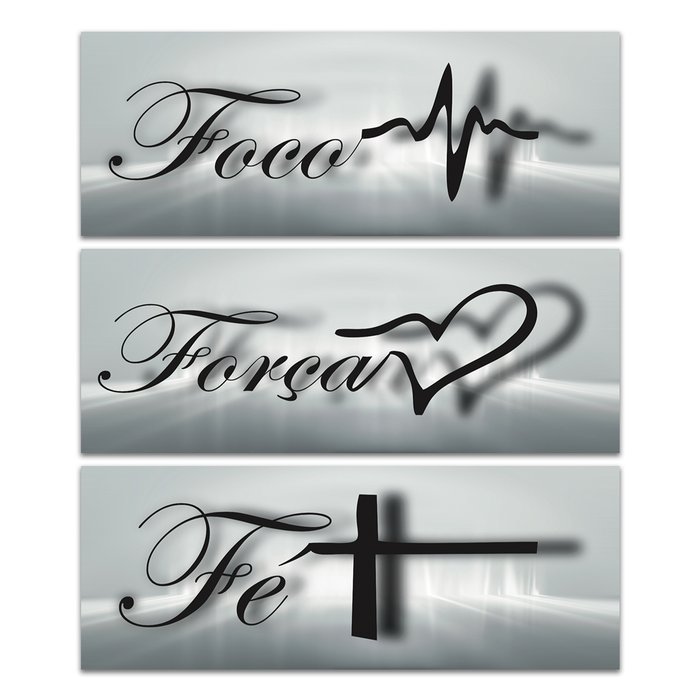 Kit 3 Placas Decorativas Frases Força Foco e Fé 40x15 cm Mdf