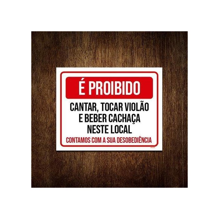 Kit 3 Placas Proibido Cantar Tocar Violão Beber Desobedeça