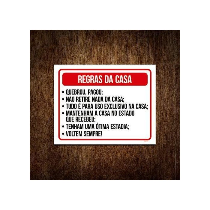 Kit 3 Placas Sinalização - Regras Casa Quebrou Pagou