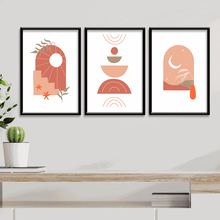 Kit 3 Plaquinhas Decorativa Adesivada Elementos Minimalista Preto - 30x40cm