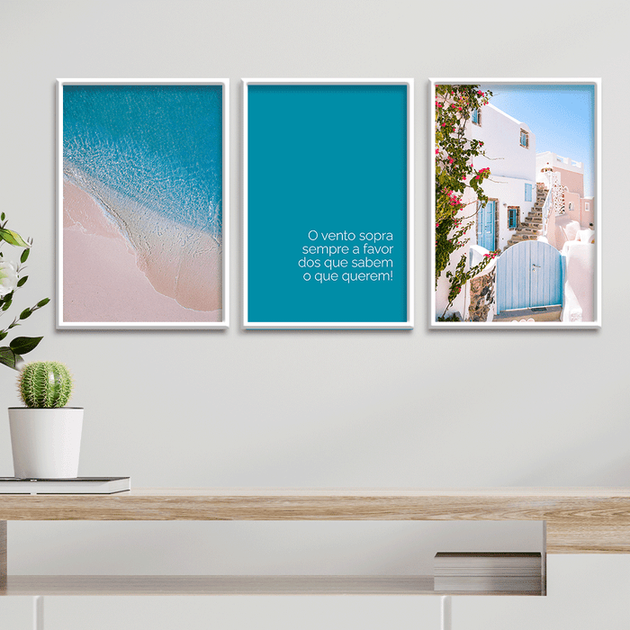 Kit 3 Plaquinhas Decorativa Adesivada Praia Branco - 30x40cm
