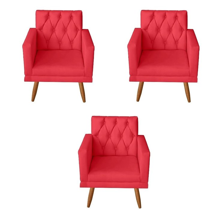 Kit 3 poltrona Para sala de Estar Bianca Capitonê Rodapé Suede Vermelho - Móveis Mafer