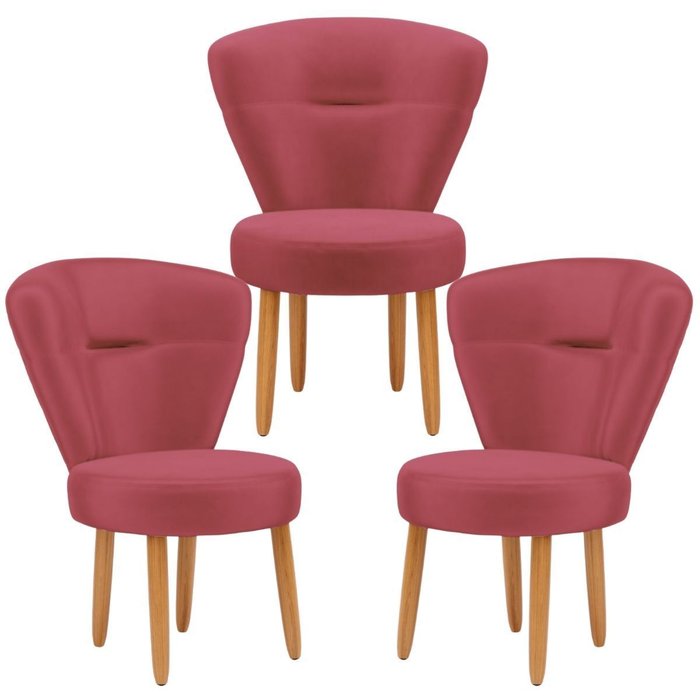Kit 3 Poltronas para Maquiagem Recepção Estúdio de Beleza Cozinha Tecido Veludo Pés de Madeira Vermelho