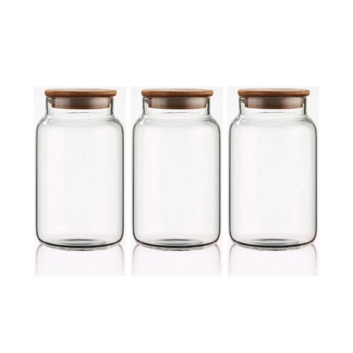 Kit 3 Potes De Vidro Hermético Tampa Bambu 300ml Boião