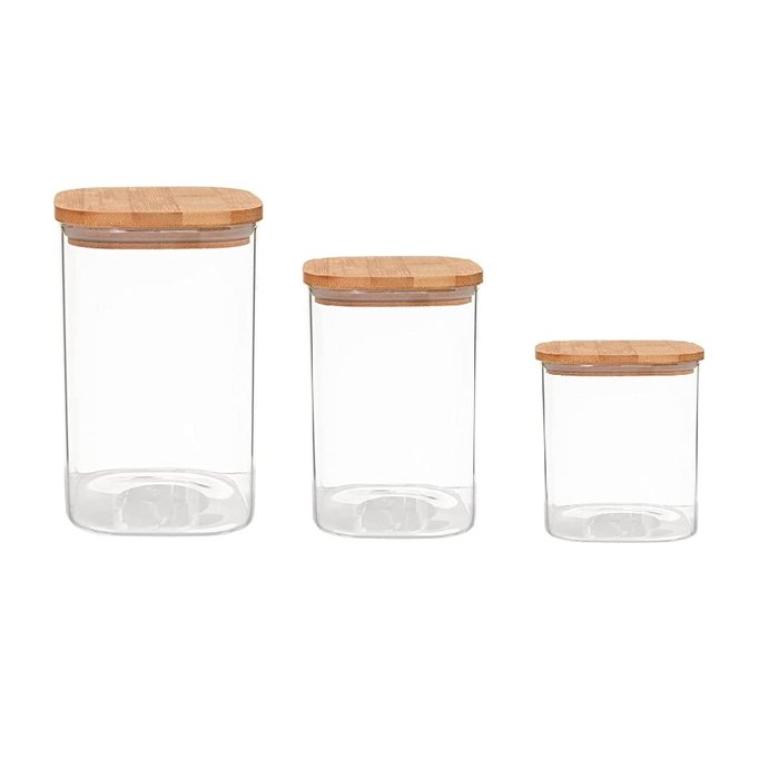 Kit 3 Potes Vidro Borossilicato Tampa Bambu 21cm 16cm 10cm