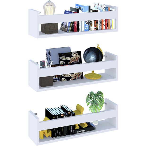 Kit com 3 Prateleiras branco 50cm – Ideal para Livros, Revistas e Decoração Infantil