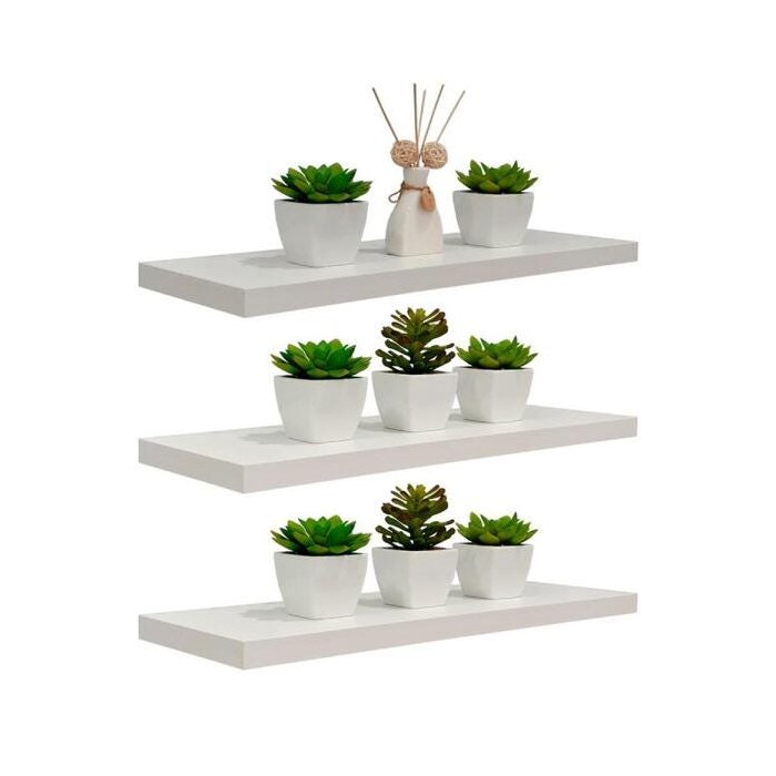 Kit 3 Prateleiras 60 x 20cm Branco Espessura 25mm Suporte Invisível