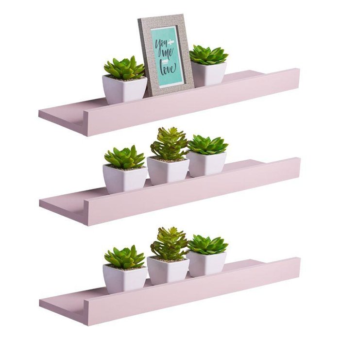 Kit 3 Prateleiras Porta Quadros 80 X 10cm Rosa Claro Suporte Invisível